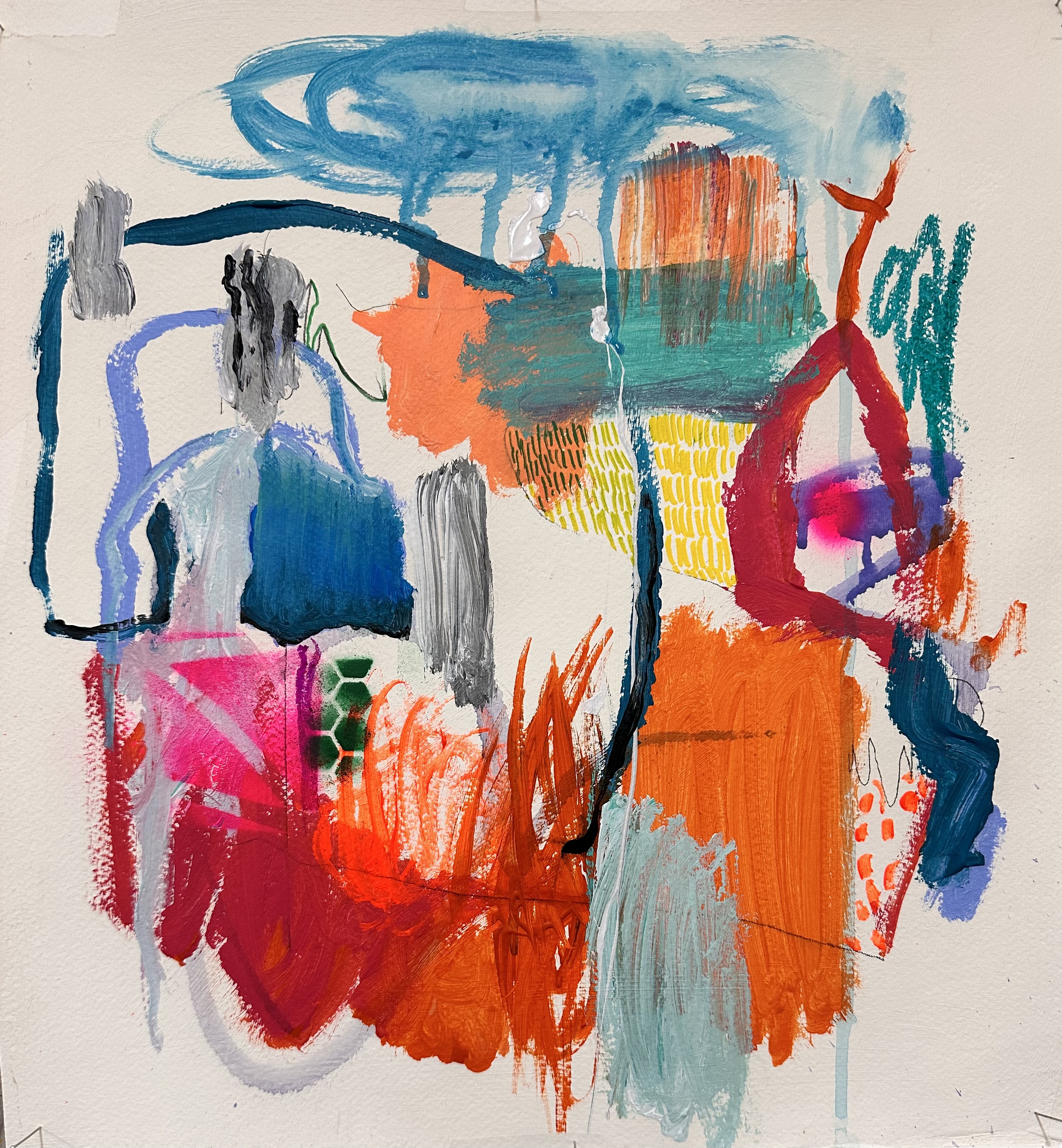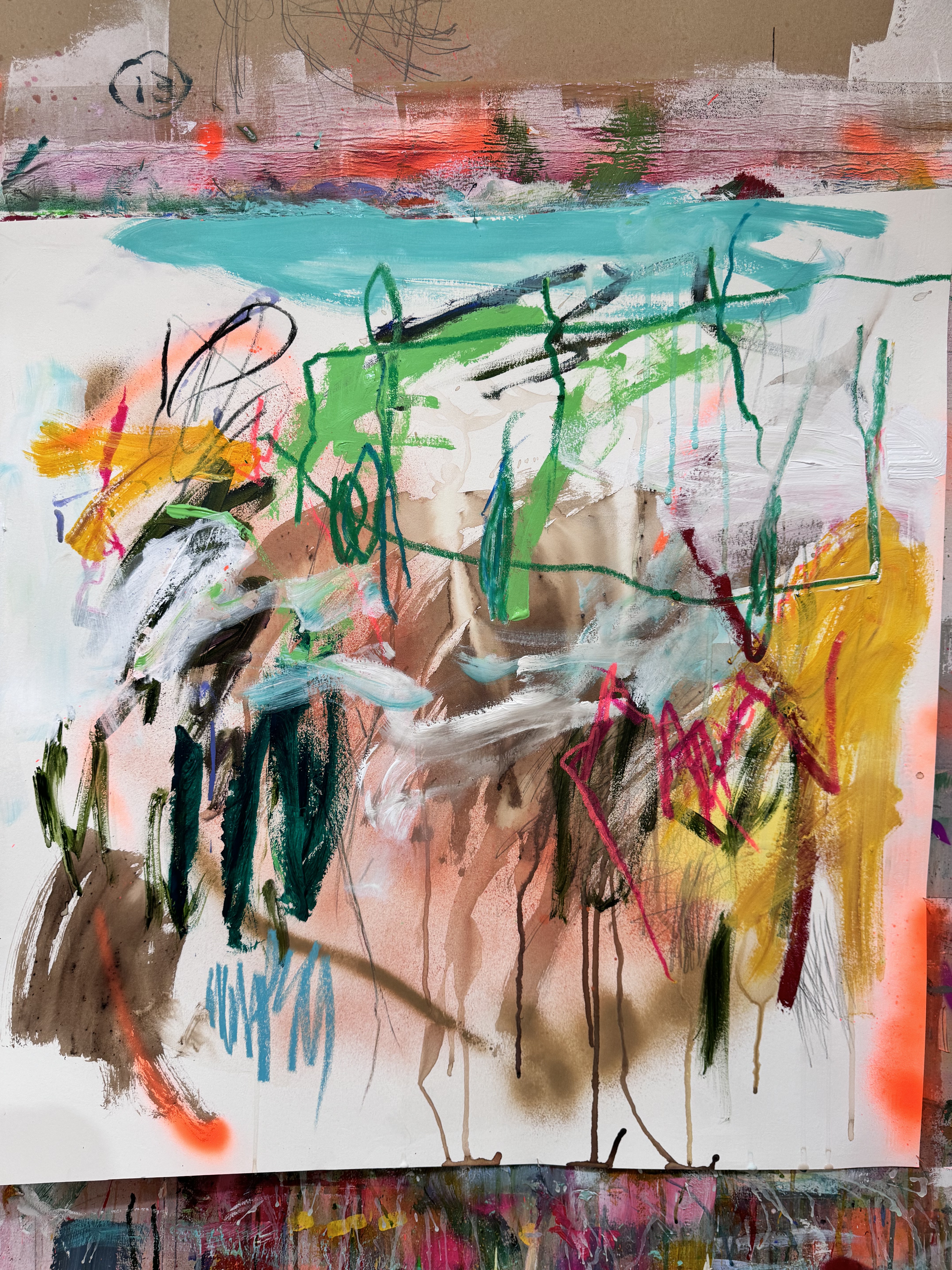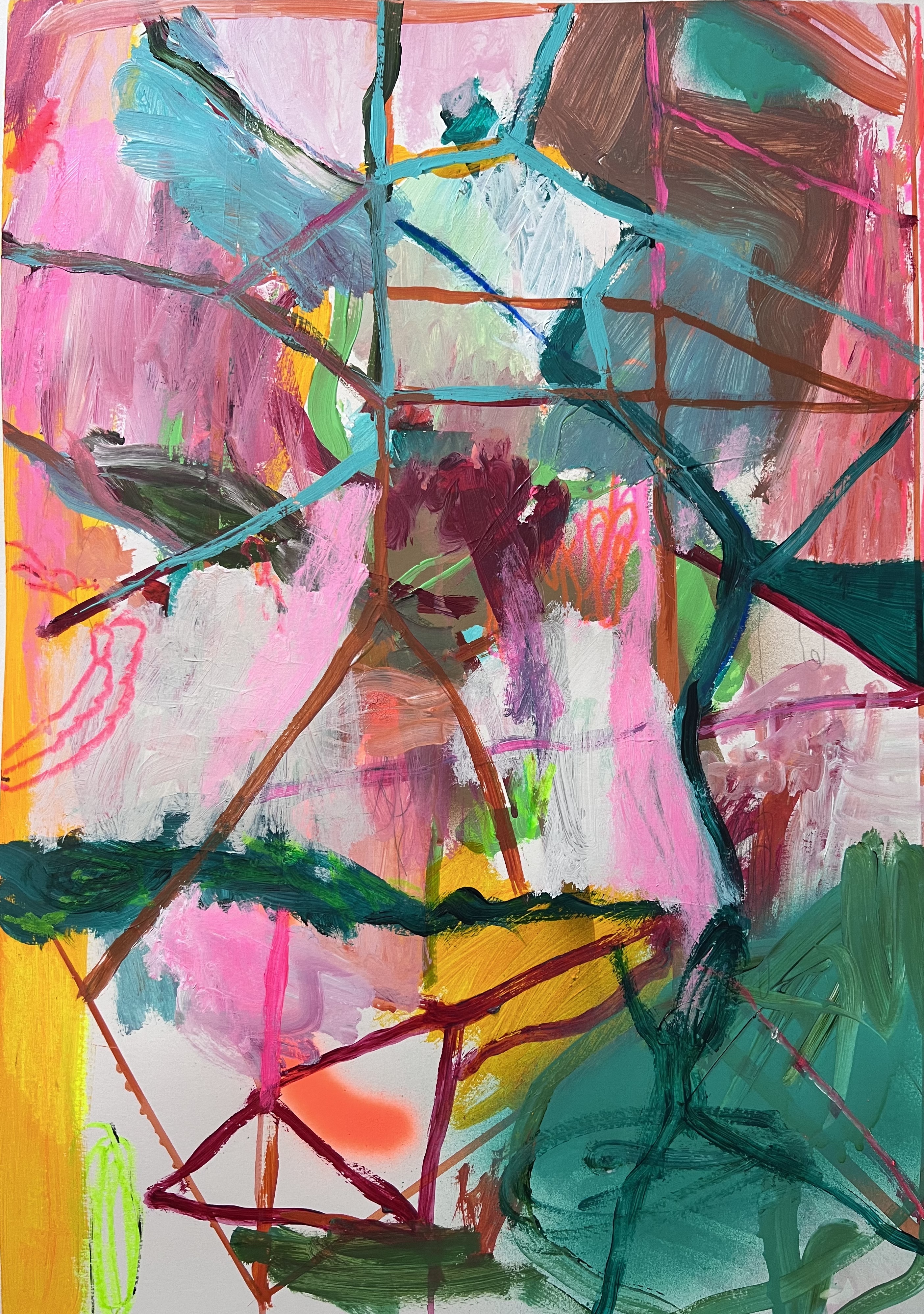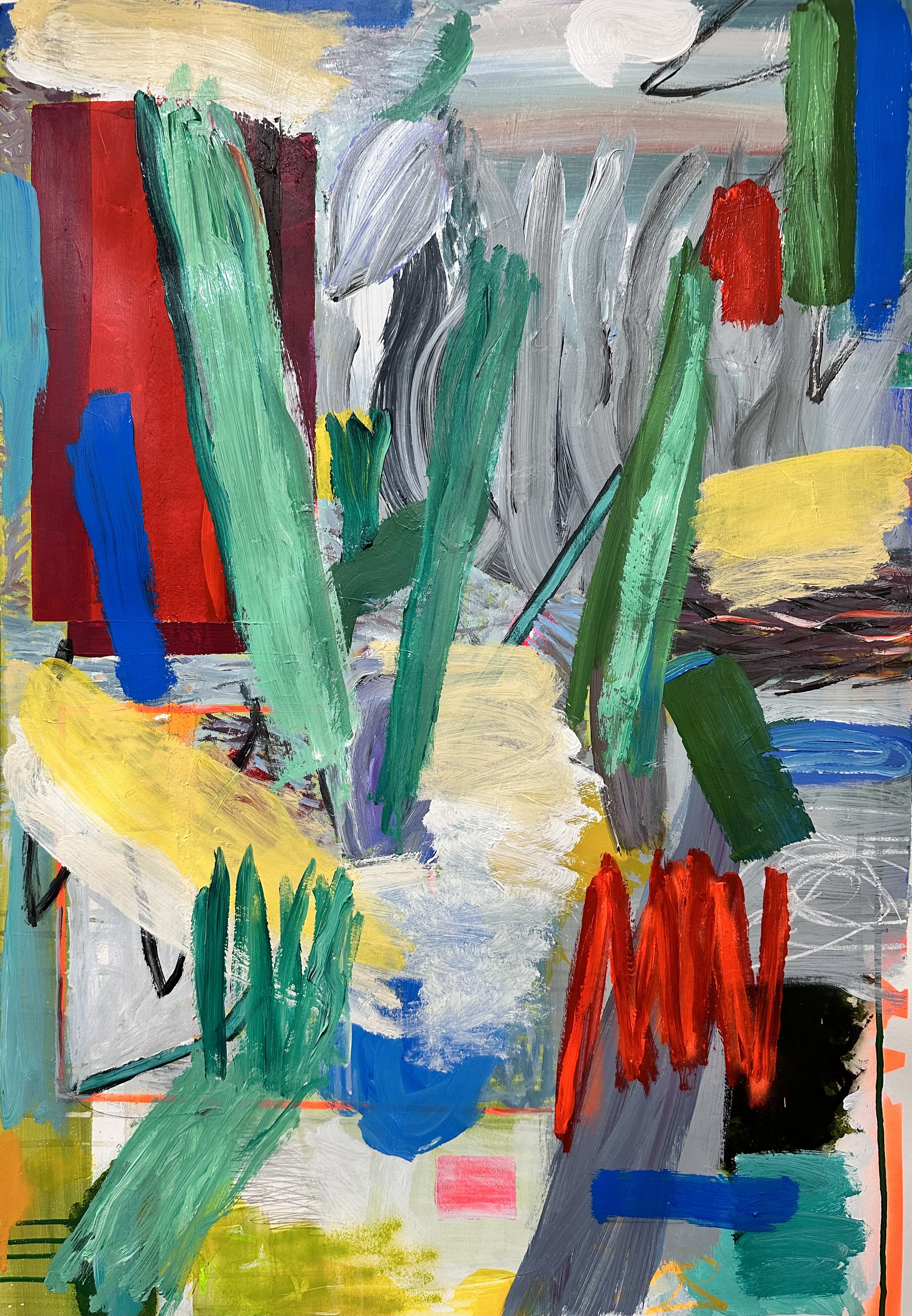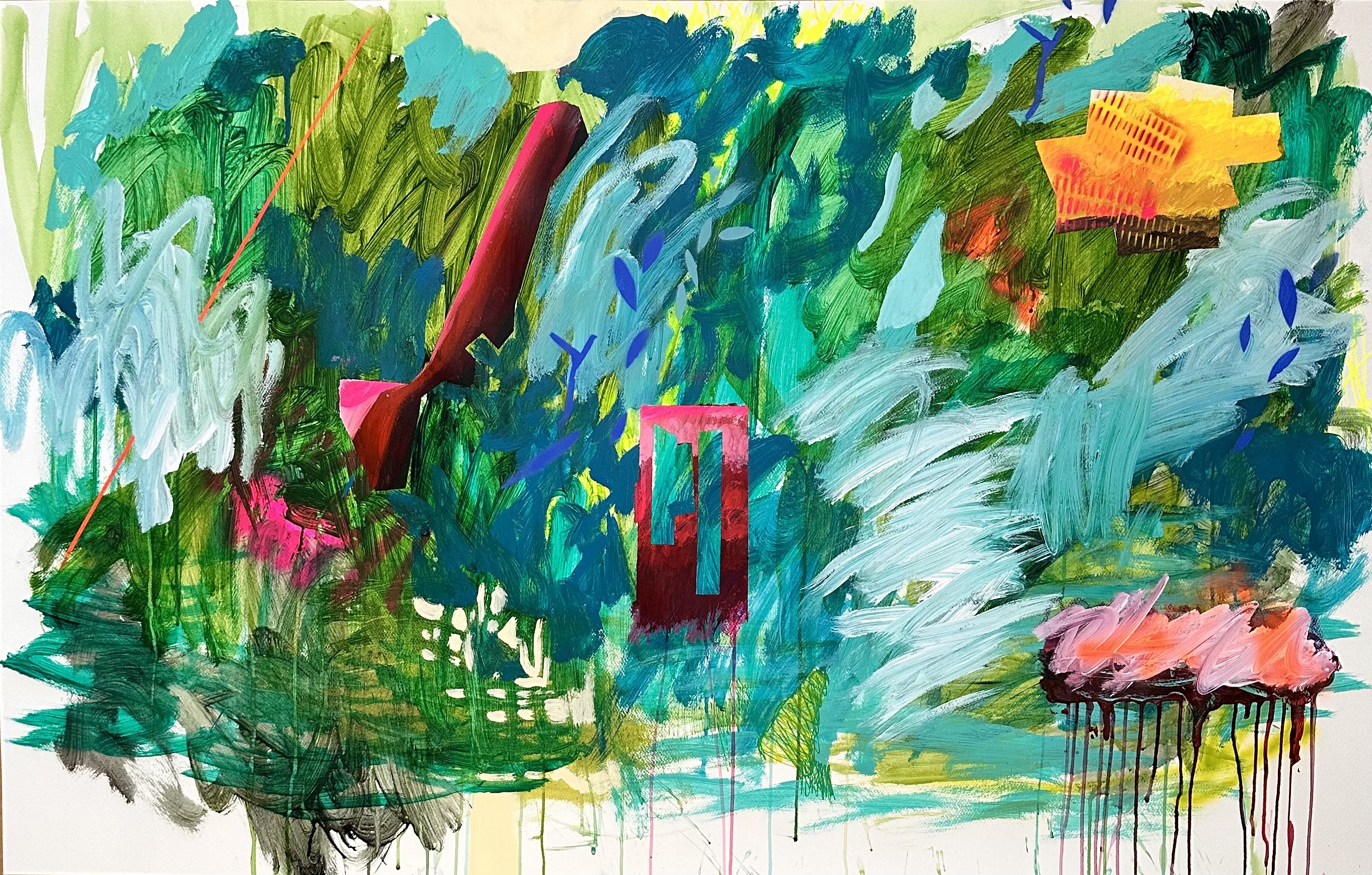 Me inspiro en la naturaleza, más específicamente en los paisajes. Consisten en interpretaciones de mis sensaciones y recuerdos de los lugares visitados y vividos, encapsulando estas emociones en declaraciones abstractas audaces pero tranquilas aisladas por los bordes del papel.